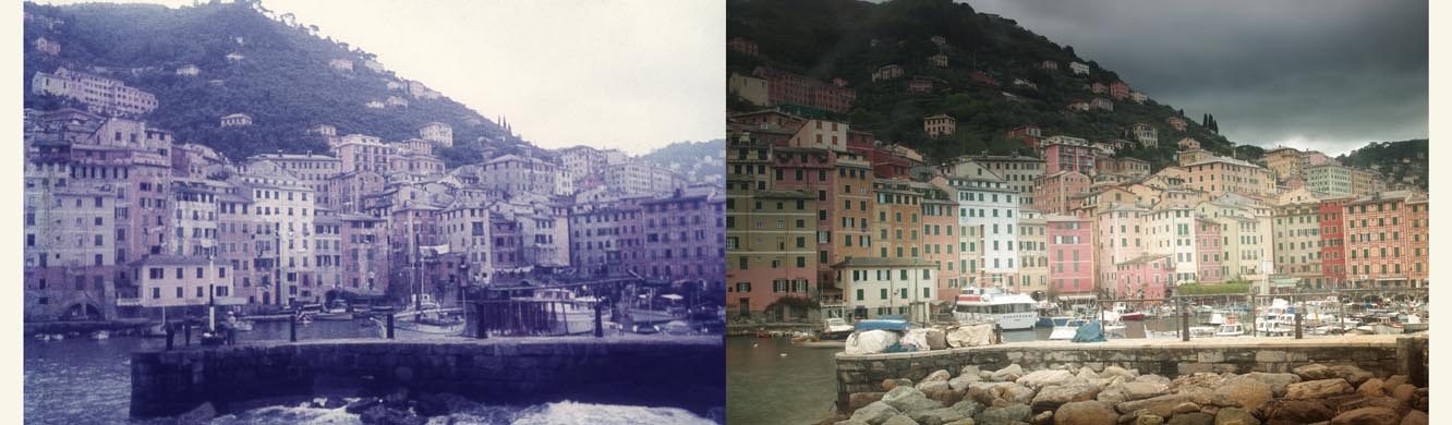 Ligurien, im Norden Italiens, vom Westen begrenzt das Ligurische Meer. Weiteres konnte ich zu dieser Region nicht sagen, bis ich diese Dias im Keller meiner Räume fand. Viele Jahre in Holzkästen gelagert und wahrscheinlich lange nicht gesichtet. Der Zeitfraß am Diamaterial gibt den Bildern eine eigene Ästhetik. Eben diese Sinnlichkeit animierte mich: Ich wollte meine Kamera gleich positionieren, wie der mir unbekannte Fotograf, der wohl in den 60iger Jahren Ligurien bereiste. Was ist aus diesen poetischen Plätzen geworden? Ich lade Sie ein mich auf diese kleine „Zeitreise“ zu begleiten.